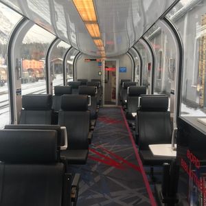 ベルニナ急行は1等車をオススメします。できれば進行方向のできるだけ後ろに座るとパノラマ景色が見えるでしょう。