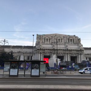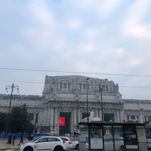 9時半ミラノ駅発でしたが、8時45分にバス停に到着。バス停がわかりにくい。写真はバス停から見たミラノ中央駅。