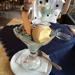 早く着いたので隣のカフェで。アイスクリームを一口食べたらあまりの美味しさにパチリ。集合場所も分かりやすくバスも大型で快適でした。言うことなしです。