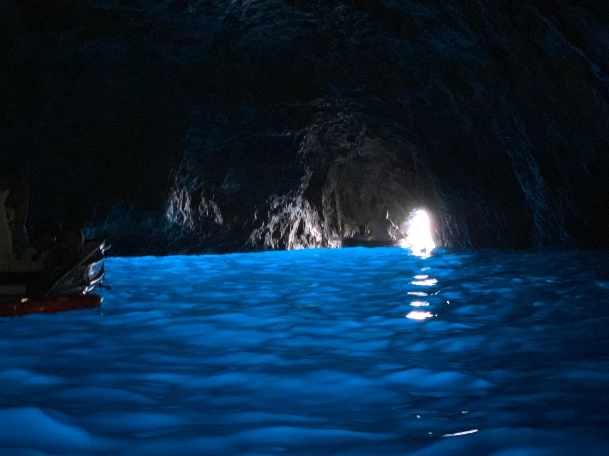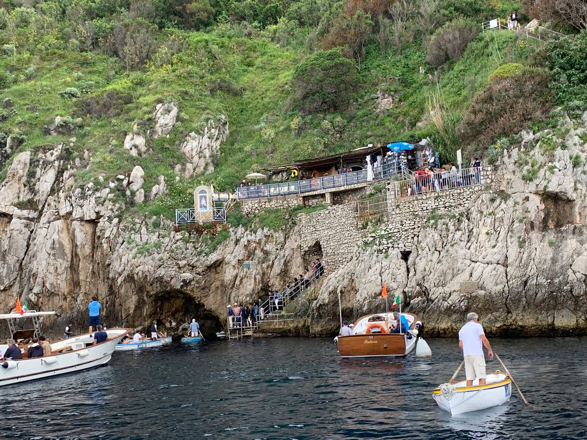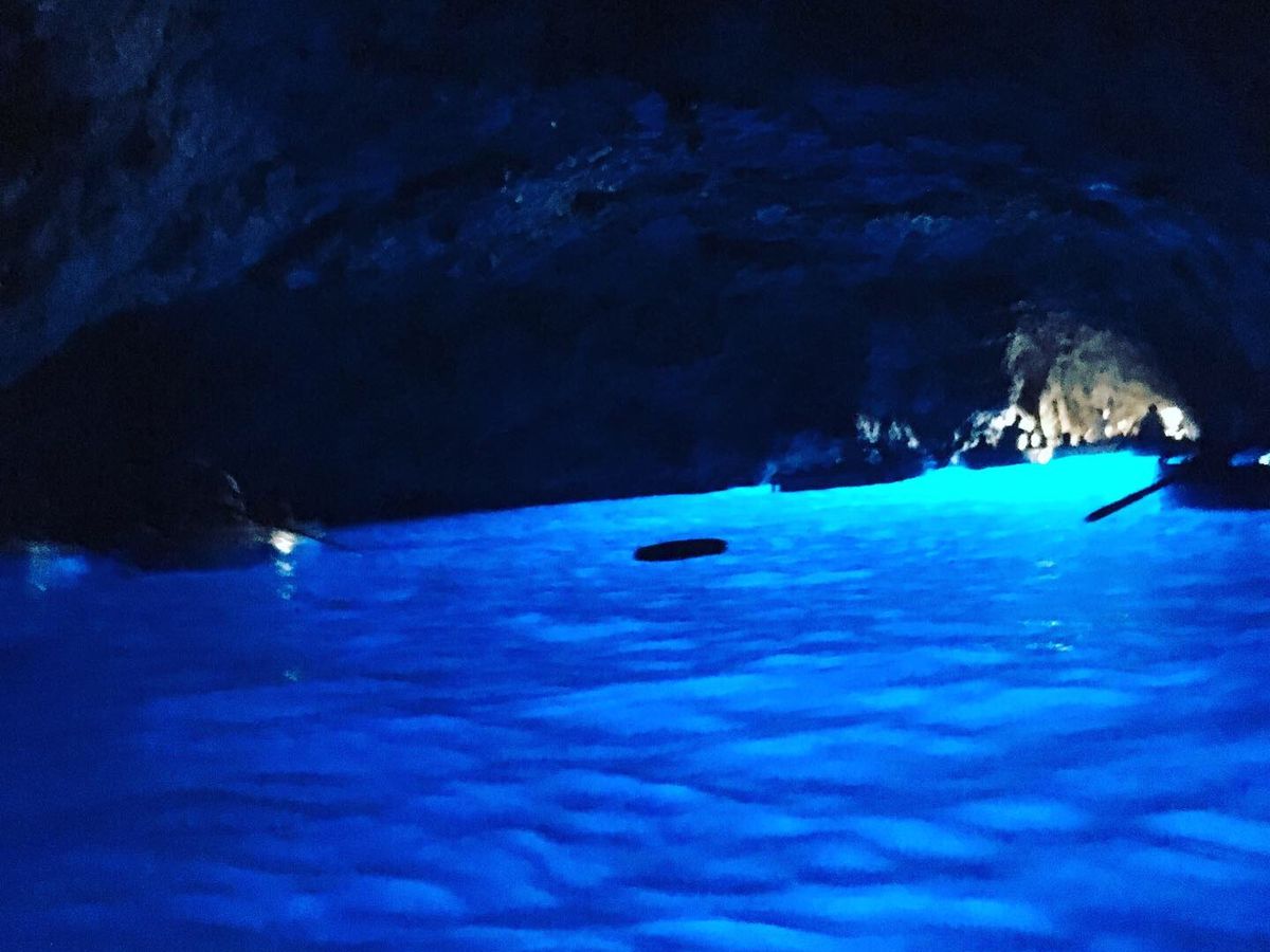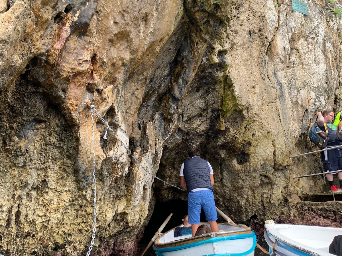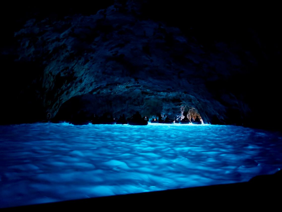 ナポリの港から高速船でカプリ島に移動してモーターボートに乗り換えて青の洞窟入り口前へ。他にも沢山のモーターボートがあり、一時間半ぐらい待つとガイドさんから連絡がありました。
