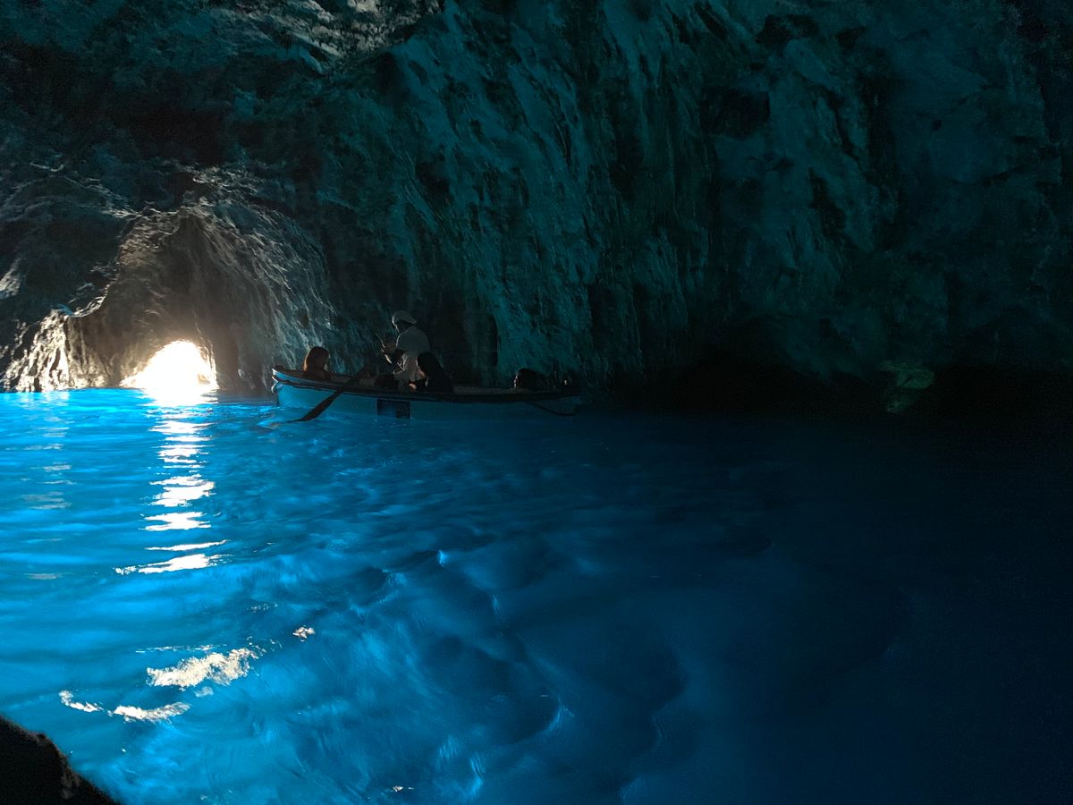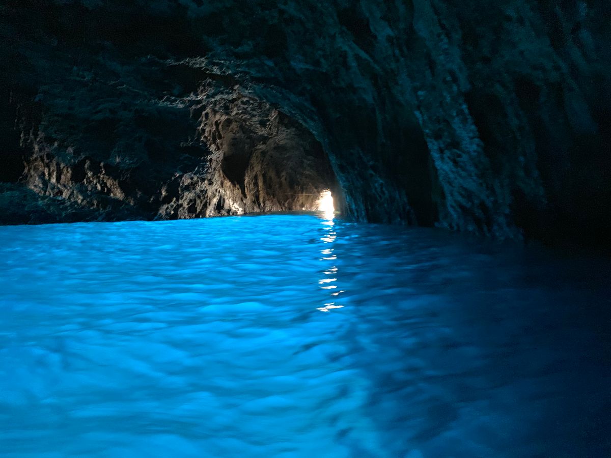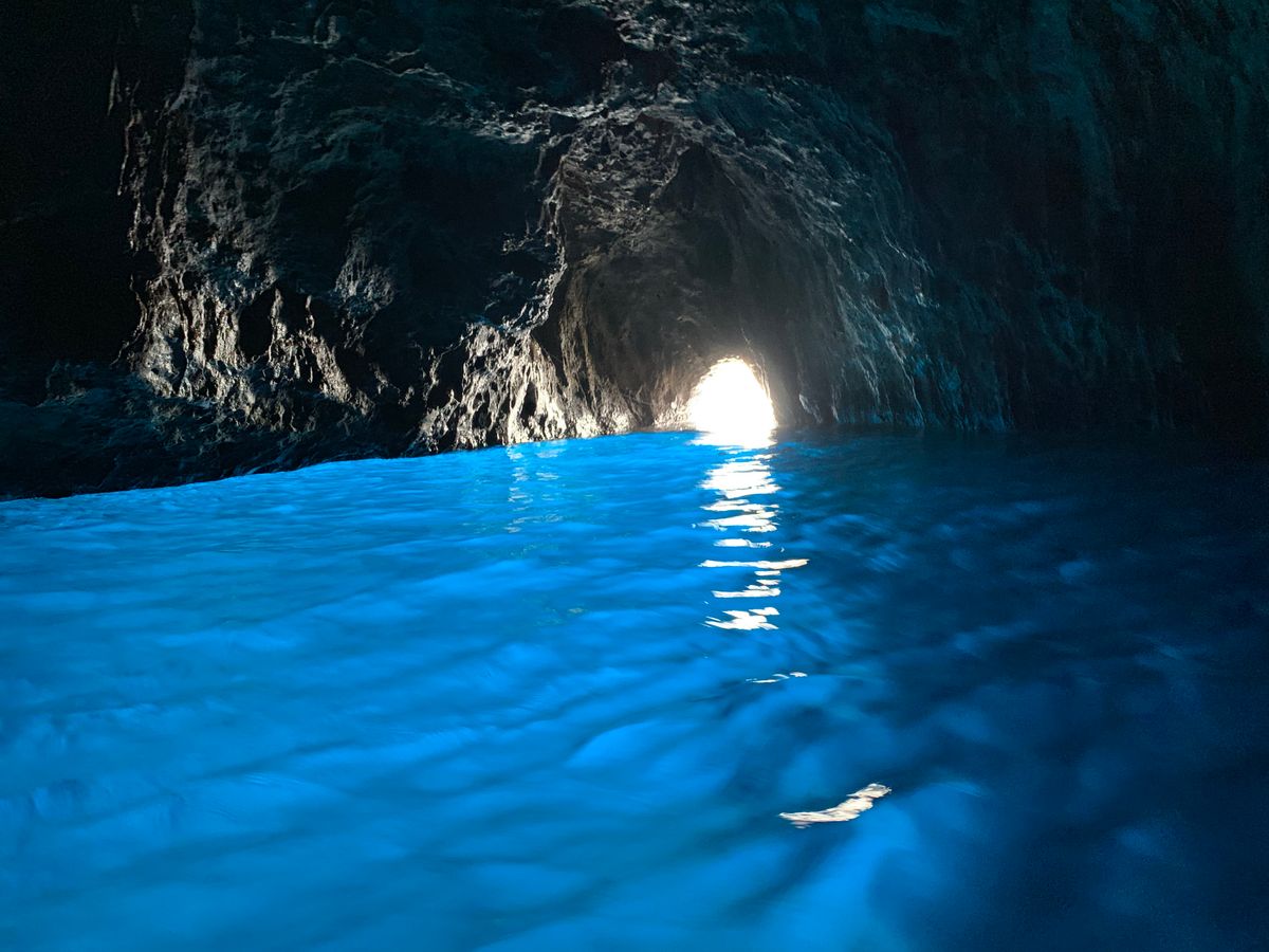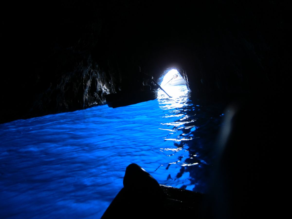 ナポリの港から高速船でカプリ島に移動してモーターボートに乗り換えて青の洞窟入り口前へ。他にも沢山のモーターボートがあり、一時間半ぐらい待つとガイドさんから連絡がありました。