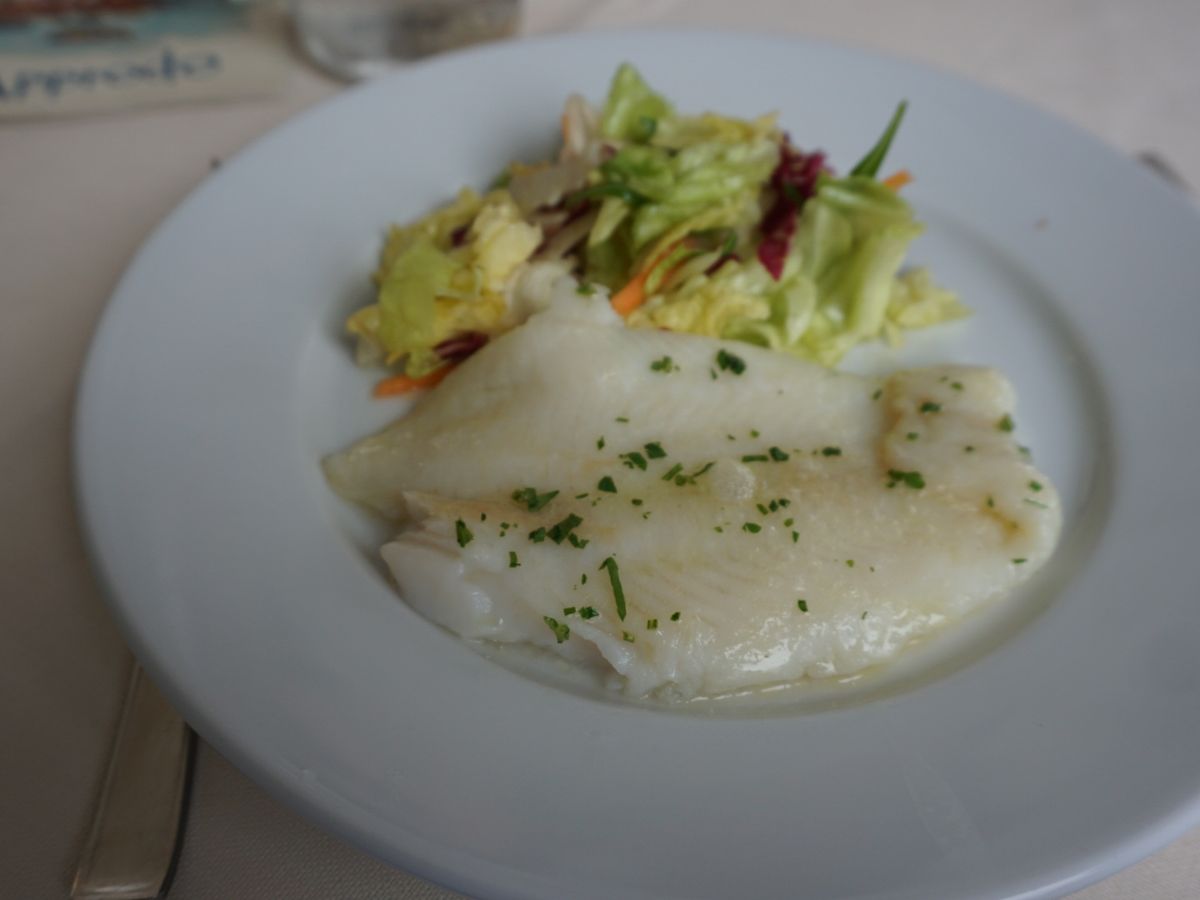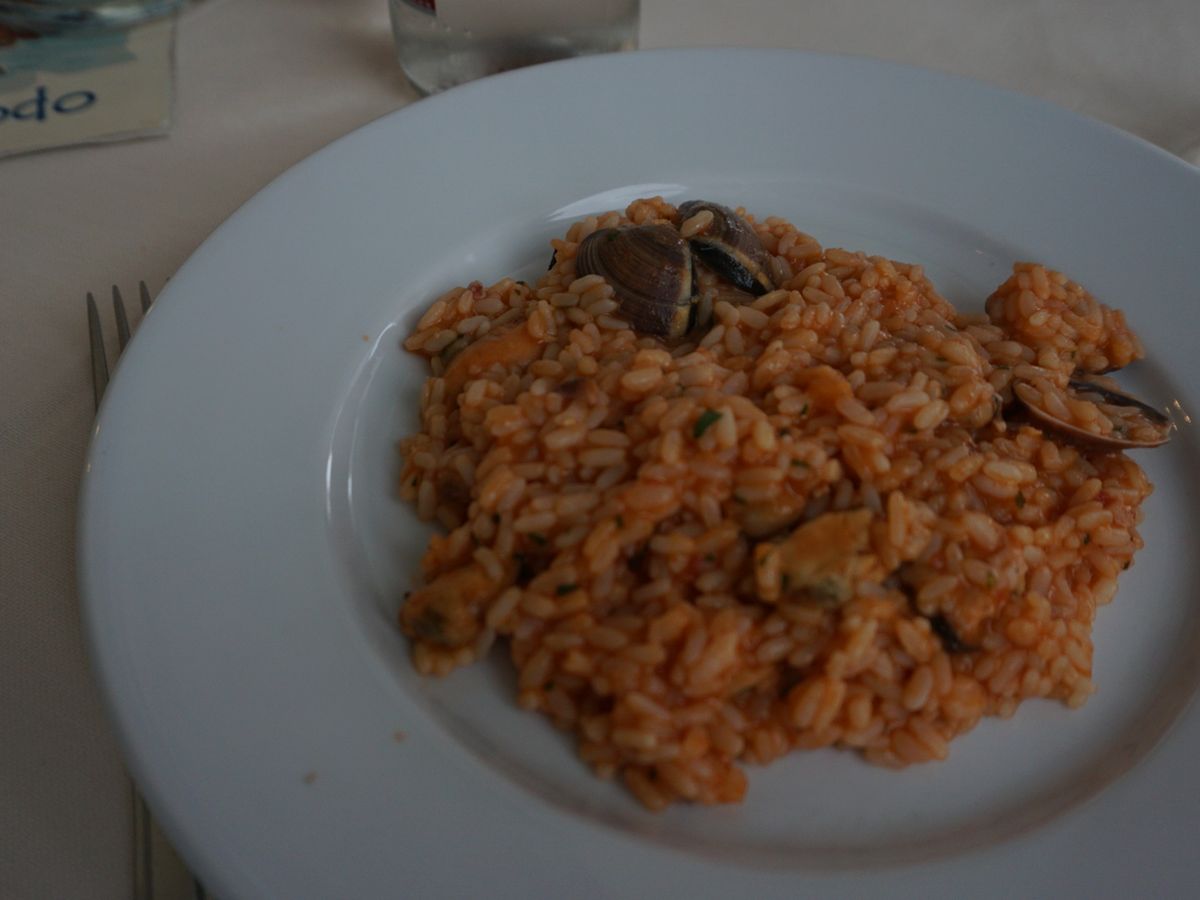 お決まりメニューの昼食のクオリティーも、???? でした。変色したサラダの付いたタラのソテーと、「イタリアでこのリゾットは無いだろう!?」と思うもの。。。