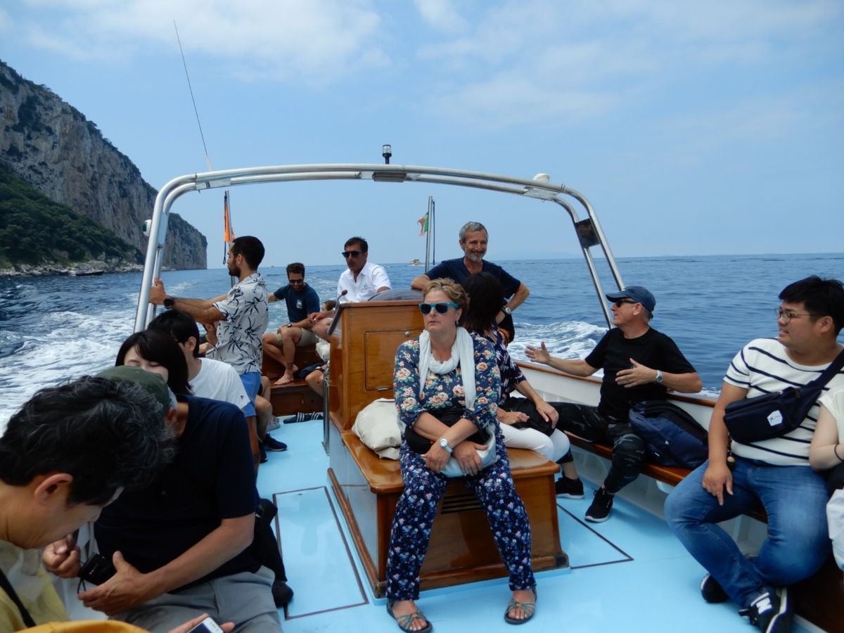 確率50%の青の洞窟に入ることが出来たのは、本当にラッキーでした。今回、心身状態が不完全と思われる男性が1人で参加されており、Capri島で船に乗り継ぎ戻るまでの間にトイレはないのでNapoliからの船内で事前に済ませる様にとの案内も理解されず、結局青の洞窟行きの船には乗船されないでCapri島に残られることになったのですが、Capri出港後直ぐに「誰か海に落ちた」との声で船は港に戻ることになりました。海に落ちたのは件の方で、ガイドの方1名が残られることになりました。事前のチェックは難しいと思われますが、事故を未然に防ぐ為にも何らかの対策は必要と感じました。