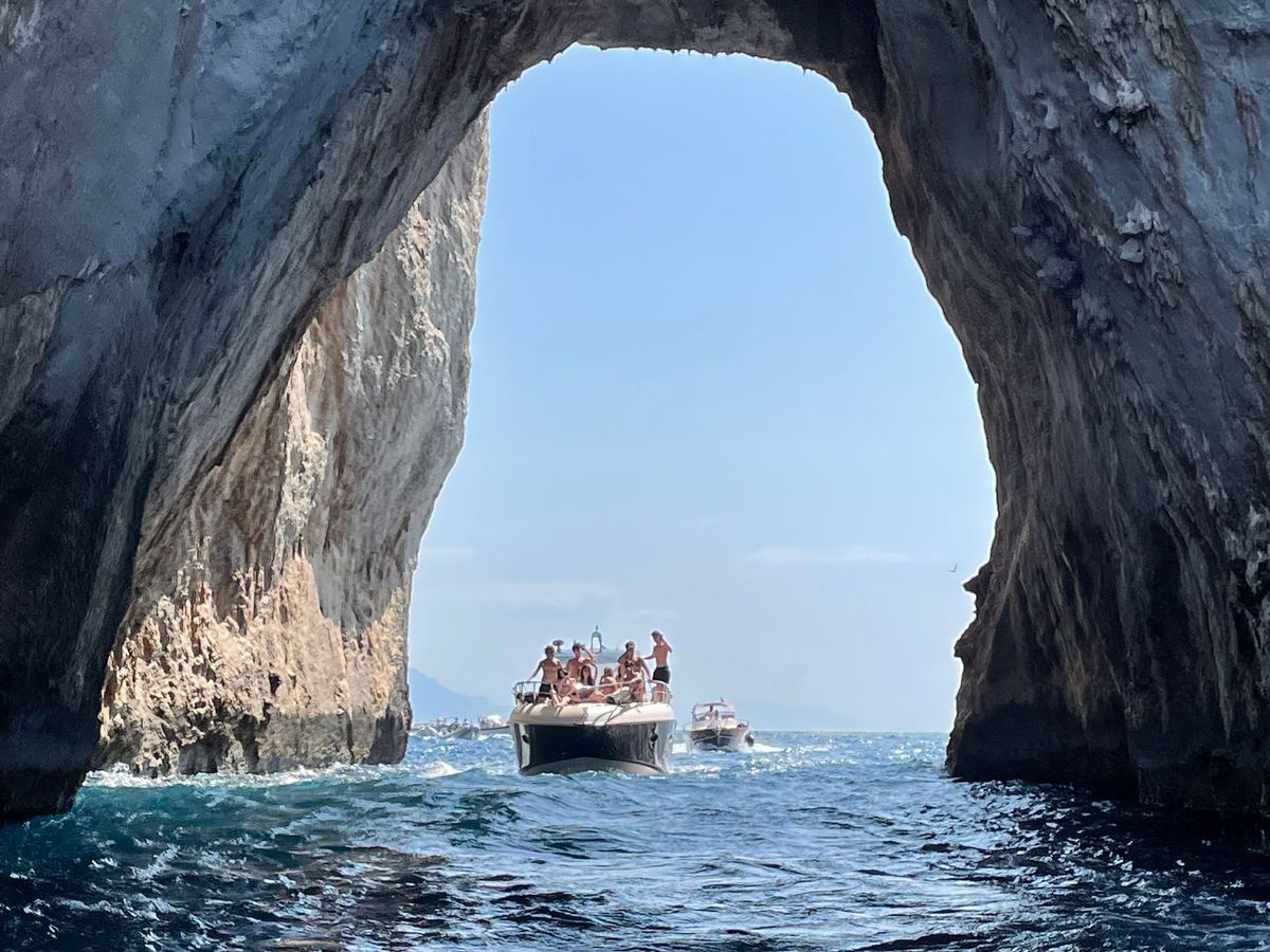 これが旅ですネ。ガイドの機転で米国客のカプリ島半周クルーズに急遽ジョインさせて貰い、他の洞窟を訪ねたり、スピードを上げたボート上では透明なカプリブルーの海水に歓声を上げたり。