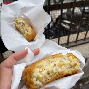スパッカナボリの混み合うストリートでも、初スパゲッティコロッケ、揚げピザを食べました。どちらもとても美味しかったです。