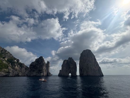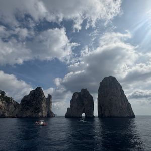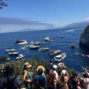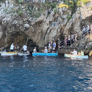 青の洞窟は、生憎、波が高くて入れませんでしたが、カプリ島一周のクルーズに案内して頂きました。三つの洞窟や、カプリ島の名所を丁寧に説明して頂きました。ガイドは、トニアさんでした。トニアさんは、青の洞窟が、もし、入場出来るようになったら、連絡してもらえるよう取り計らってくださったり、色々な所で、機転を利かせてくださいました。青の洞窟には、入場出来なく残念でしたが、トニアさんに、ガイドをして頂いたお陰で、本当に満喫できました。最後、お土産も、見る時間もない中だったのですが、一生懸命、どれがいいか一緒に考えてくださいました。本当に有り難かったです。帰りの船でも、トニアさんと色々なお話しをさせて頂いて、お人柄に心が洗われました。トニアさんは、お話しも上手く知識も豊富で、性格も本当に素晴らしく、とても楽しい時間を過ごせました。このツアーに参加して本当に良かったです。トニアさん、ありがとうございました😆💕✨