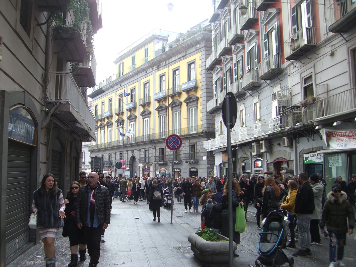 週末夜のナポリは人が多く、その合間を縫うようにしてホテルを探しました。