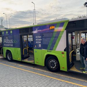 このバスデザインぽいAlibusと書かれた緑のパネルに沿って歩いていくとバス停があります。