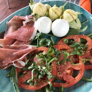 海岸からはバスに乗り、アナカプリのモンテ・ソラーロ山頂までリフトで一気に登り絶景を楽しんだ後は、リフト乗り場近くのレストランで昼食。レジーナさんが予め席を確保して下さり、注文の際はメニューを丁寧に説明して下さいました。前菜もパスタも、そしてレモン果汁たっぷりのグラニータリモーネも皆美味しかったです。