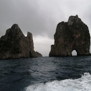冬は青の洞窟の入場率はとても低いとは聞いていましたが、せっかくなのでカプリ島には行くことにしました。ガイドさんは日本語が上手です。カプリ島までは50分くらいかかります。私たちが向かった日はけっこう波があり、船が揺れました。船酔いしやすい人は、トラベルミンを持って行った方が良いです。カプリ島につくとすぐのところに青の洞窟行きのボートの専用乗り場があるのですが、この日はボートはなかったので、ガイドさんがすぐに判断して、島を一周する船に乗ることになりました。こちらの船は便数が限られているので、ガイドさんの素早い判断が鍵となります。青の洞窟に入れない場合、島の外周を回りたいか、島内の観光だけしたいか、あらかじめ伝えておくとスムーズかと思います。