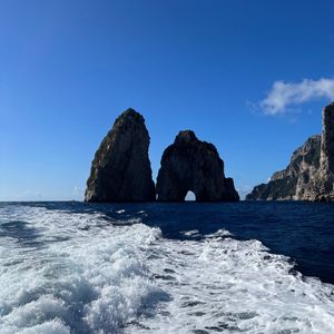 青の洞窟は年間を通して30%の確率でしか入れないそうです。なので、見られたらラッキーという感覚でした。実際私も入ることはできませんでしたが、船で近くまで移動し、カプリ島の自然を感じることができました。