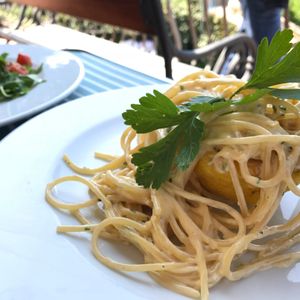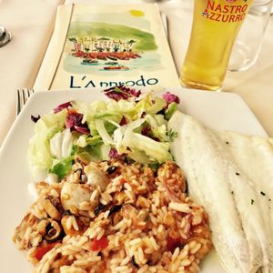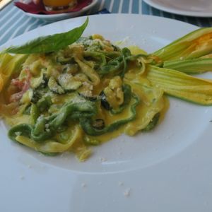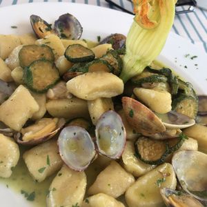 待ち合わせの「SNACK BAR PICNIC」で合流するとすぐにフェリーに効率よく乗船。カプリ島に着いてからの船の乗り換えも出港しようとしている船を止めて飛び乗るように乗船。あっという間に青の洞窟の入り口まで到着。30分程度の待ち時間で洞窟に入ることができとてもラッキー。その後は洞窟横から陸にあがりバスでアナカプリへ移動。早い時間にリフトでソラーノ山に登ることができました。下山する頃には続々と登っていく人が増えて混雑していたので、早い時間に登れて良かったと思います。リフト乗り場横のレストランでランチ。ズッキーニの花とサフランのスパゲッティが見た目が綺麗で味も最高。アンチョビとミニトマトのブルスケッタもとても美味しくいただきました。青空の下でのビールもとても美味しく、最高のランチでした。ガイドのトニア(tonia)さんはとても優しく、夕食のお店を紹介いただき予約までしていただき、大変感謝しています。