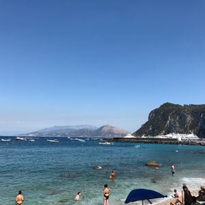 天気は快晴だったものの風が強かったためか、カプリ島までは結構大きい船だったのにかなり揺れ、普段乗り物酔いを全くしない私も少し船酔いする感じで、友人はかなり酔ってました。
