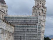 ローマから高速鉄道で、フィレンツェに行き、フィレンツェからバスでピサまで移動するツアーです。フィレンツェでトスカーナ料理を堪能した後、ワインでほろ酔い状態でバスに乗り込みました。 ピサのバス到着乗り場からピサの斜塔までの移動も、日本人ガイドさんのお蔭で、優先的に連れて行ってもらえます。 ピサの斜塔。入場して、しばらく歩くとその姿を見つけることができます。 傾斜5度だそうですが、随分傾いて感じます。