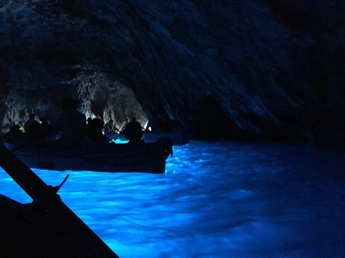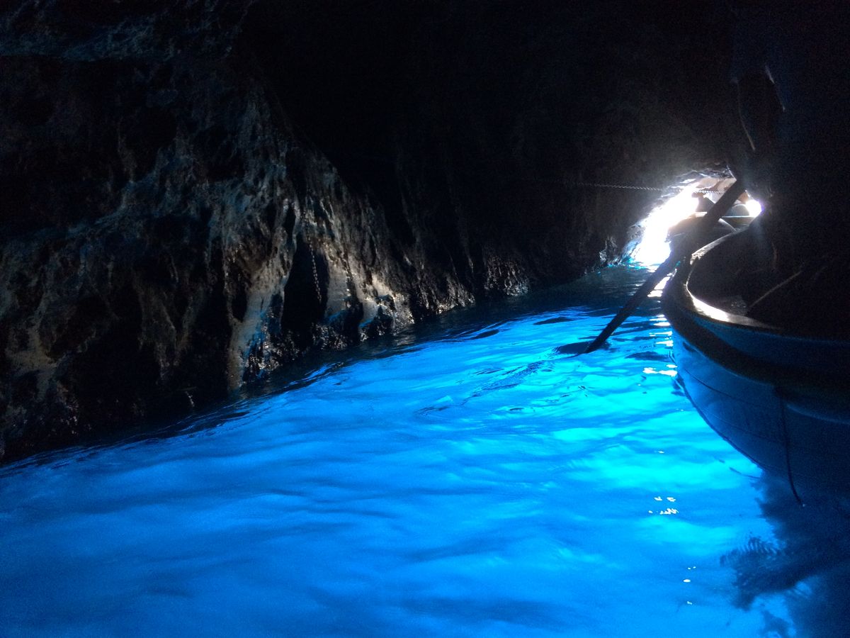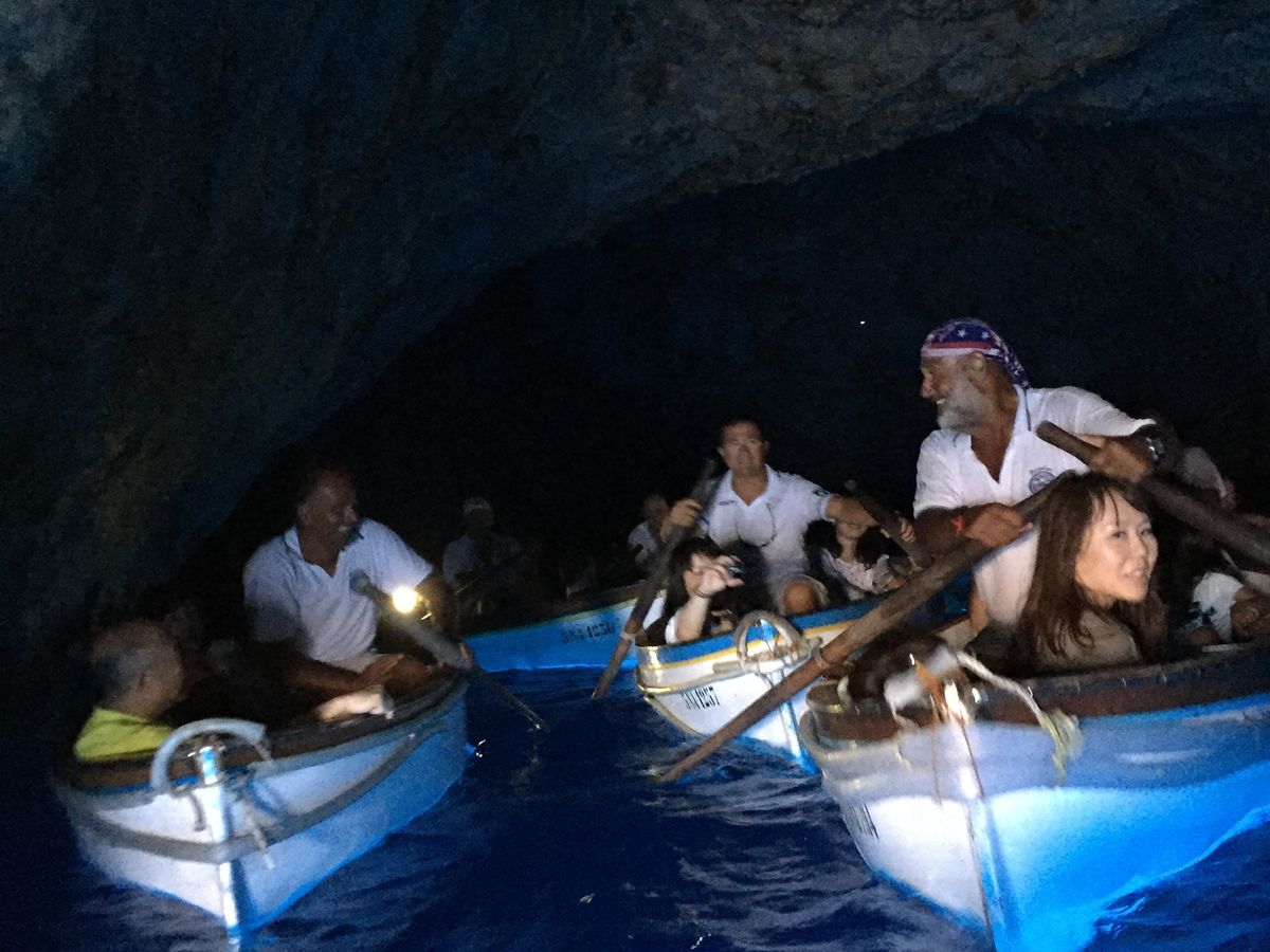 ナポリからの高速船と洞窟に入るまでのボート、洞窟内の小舟と3種類の船に乗ることになります。過信せずに酔い止めの薬を忘れずに。あと日焼け止めも!