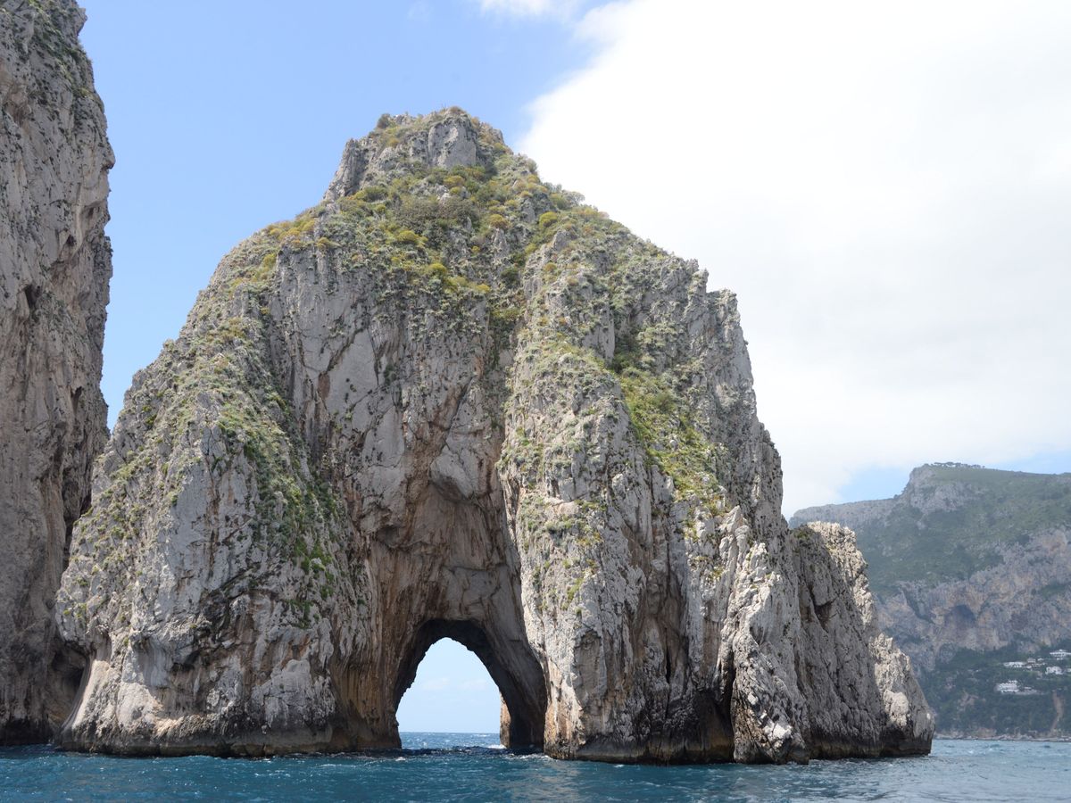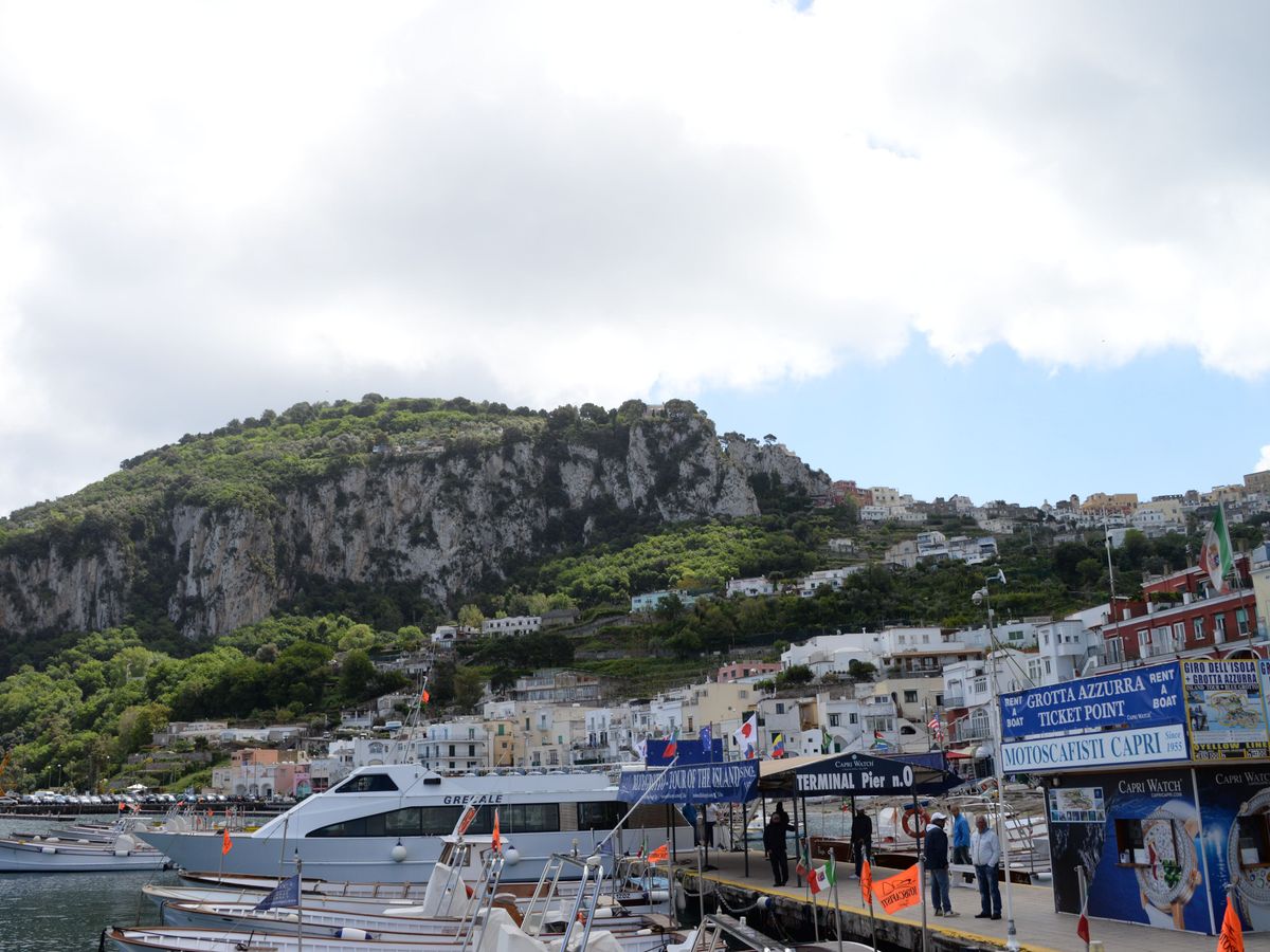 ローマを出発する時、雨上がりで曇り空でしたが、ナポリに着いた時は、晴れ。高速船に乗り換えカプリ島へ。船の揺れが半端じゃなく、先端のトイレに行くのに一苦労。波が高く、青の洞窟は、断念。小さい船で、島の周辺をクルーズ。青空のもと、エメラルドグリーンの海が最高でした。激しい波が参加メンバーを直撃。新しいアトラクションみたいで、面白かったです。昔歌手志望だったガイドのカマクラさんの「帰れソレントへ」の熱唱を聞けて最高でした。現地ガイドのレジーナさんと絶妙のコンビでした。昼食もリゾットや魚料理は、まずまず。追加注文のマルゲリータ€6も最高でした。自由時間は参加メンバーのショッピングやケーブルカー乗車など、さまざまな要求にこたえていただけました。帰りの高速船の揺れは、行きよりも激しく、決して両サイドと前方の席に座らないでください。このツアー酔い止めは必須です。きっと行きの高速船の揺れが激しかったら、青の洞窟には、入れないんでしょうね。