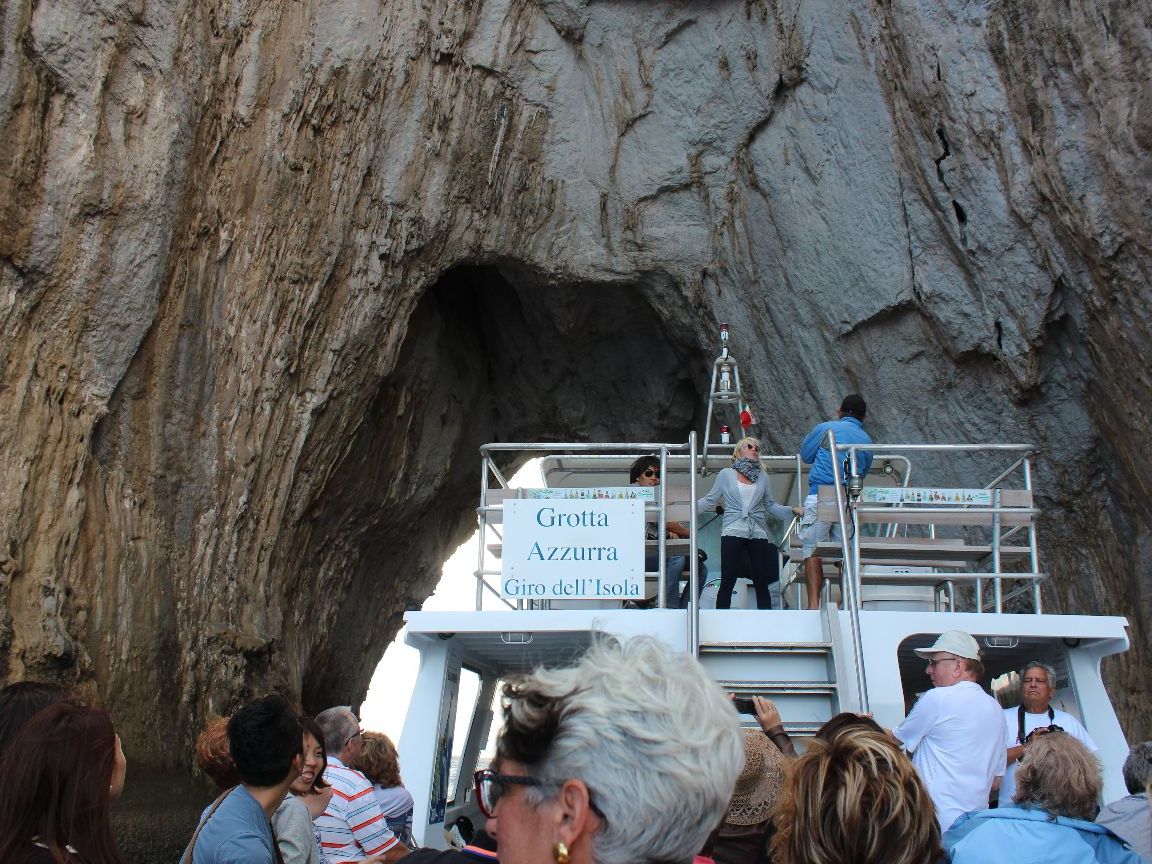 8月は洞窟に入れる確率が高めであるとのアナウンスがありましたので、期待していましたが、カプリ島に到着したところ、波があって入れないとのことでした。どうやら、私達が参加する数日前から連続して入れていないとのことを、後から知らされました。自然のことなので、仕方ないですが、とても楽しみにしていただけに、ショックでした。1日潰れてしまいますし...