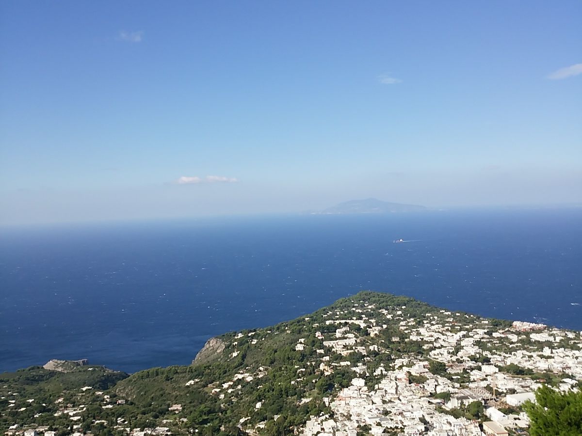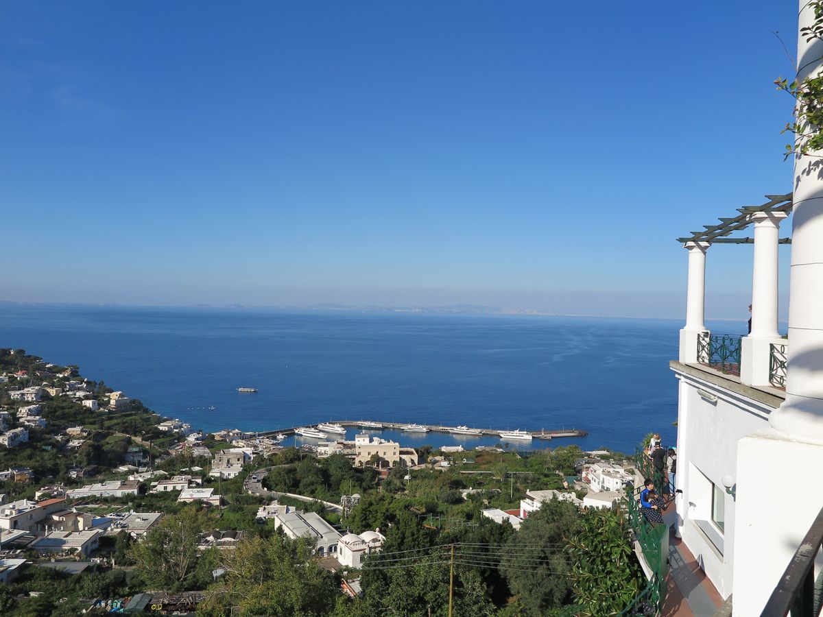 長時間のバス旅の疲労なんか吹っ飛ぶ美しさでした。当日は天気は良かったのですが船頭?さんが休みとのことで、船は出ませんでした。し、し、しかし、カプリ島の頂上へミニバスとリフトに乗り登って目にした景色のすばらしいこと。青・青・青です。冬と言うこともあり、客さんが少ないのでそれも逆に良かったと思いました。