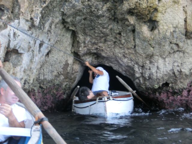 中に入っての青さの感動もありますが、大きな船から海の上で手漕ぎボートに乗り移ったり、そのボートが1艇入るか入らないかの穴から勢いよく入る瞬間、出る瞬間は何処かのアトラクションの様です。