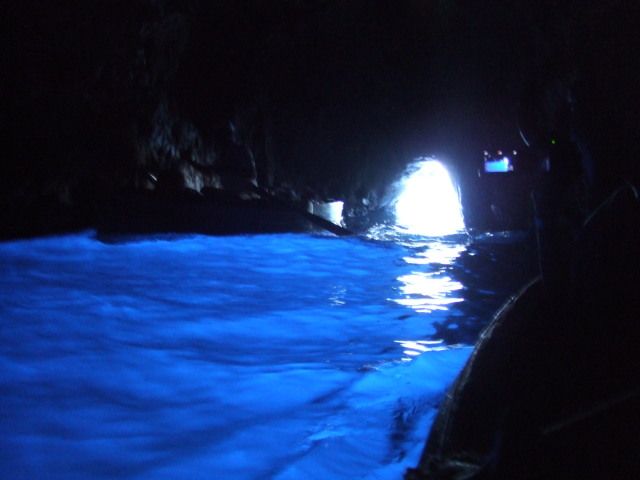 まず、期待しないでおこうと思いながらもナポリの港に到着。大きな船に乗り、カプリ島に到着。そこで今日は洞窟に入れることを知り喜びました。モーターボートに乗り換え、洞窟近くまで行くと、シーズン終わりかけのせいもあるのか待ち時間なしで小舟に乗り洞窟に入れました。私は後ろ向きだったので「後ろ後ろ!」と言う船頭さんの声に反応して振り向くとそこは青い青い世界でした。とにかく短い時間ですのでカメラに納めることと自分の目に焼き付けておくことに必死でした。出口で船頭さんが「波!」と叫んだと思ったら先頭に座っていた私に思いっきり波がきましたが、それも気にならないほど感動しました。その後の食事もおいしくいただきました。待ち時間がなかったことでショッピングの時間も十分すぎるほどありました。運もあるかとは思いますが一度は行って見る価値はあると思います。
