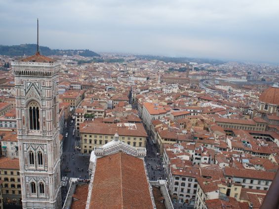 朝は無事ユーロスターに乗ることができ一安心しました。午前中をフリーにしていたので まず、ドゥオーモへ。当日は小雨も降っていましたが、目的地にたどり着きました。ドゥオーモのクーポラに登りましたが、体力のない方にはかなりきつい階段です。でも登ったかいがあります。すばらしい景色でした。午後の集合場所はわかりにくくて時間は迫るし少々あせりました。
