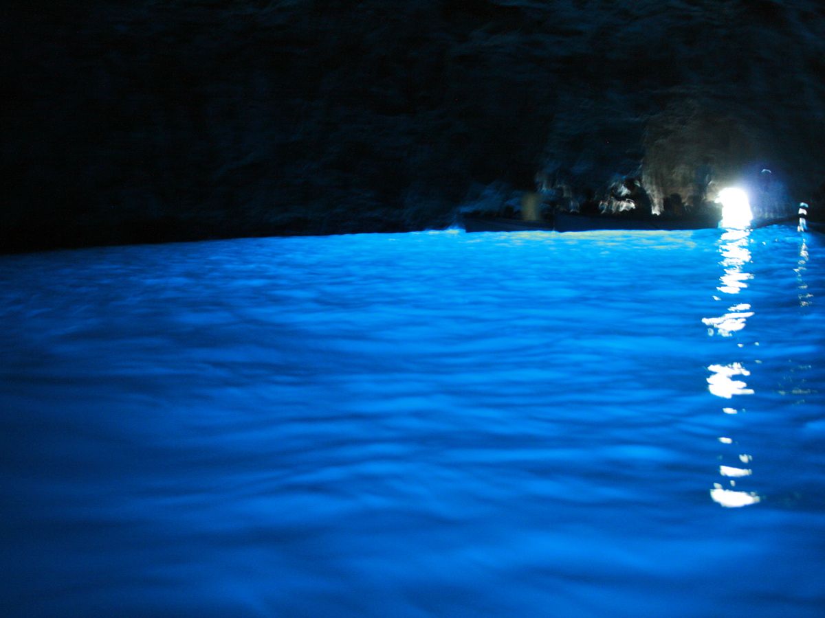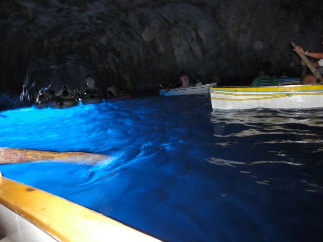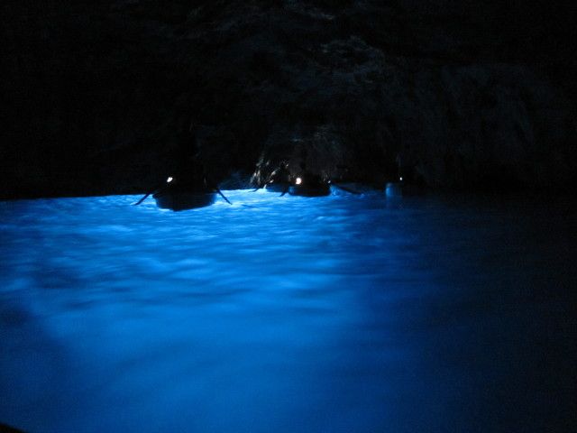 カプリ島に着いたとき洞窟は閉まっているとのことで、朝から雨だったこともあり残念に思いながら気を取り直してカプリ島ツアーを進めていると、急にバスが洞窟に向かい出したので驚きました。一旦閉まった洞窟が再び開けることとなったそうで、このようなことは本当に珍しいと言われました。あまり並ばずにボートに乗り込み、いざ洞窟内へ。中は本当に美しく、あのパスタソースのCMのようでした。一生に一度は見ておきたい場所の一つだったので、とても嬉しかったです。中には10分もいるかいないかというくらいでしたが、忘れられない光景でした。