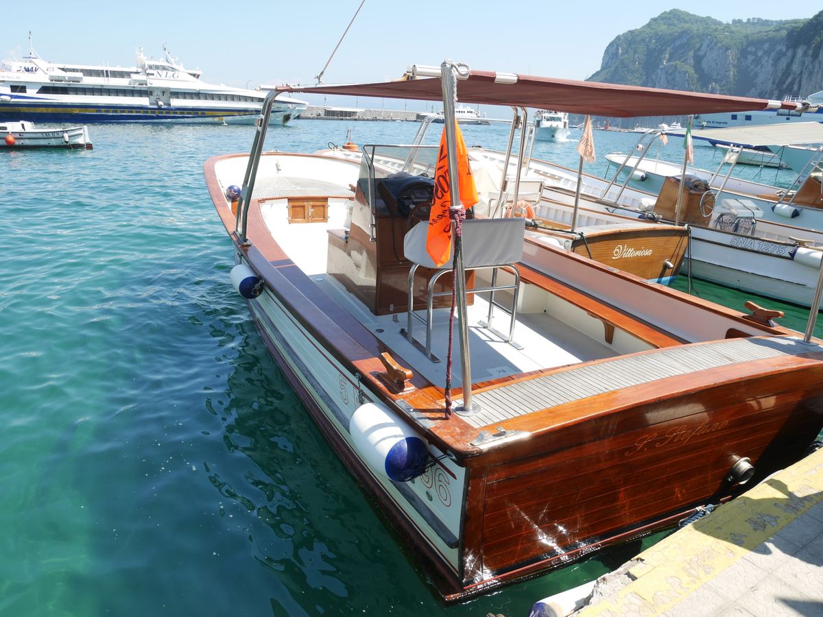 高速船でカプリ島到着後、10名程度乗れるフェリーで青の洞窟付近まで向かう。