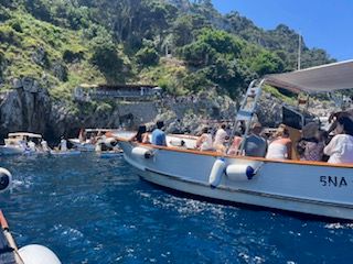 ・カプリ島到着後は、20名程度乗船できる大きな船に乗り換え、最終的には、4名程度の小さな船に乗って、青の洞窟へ。