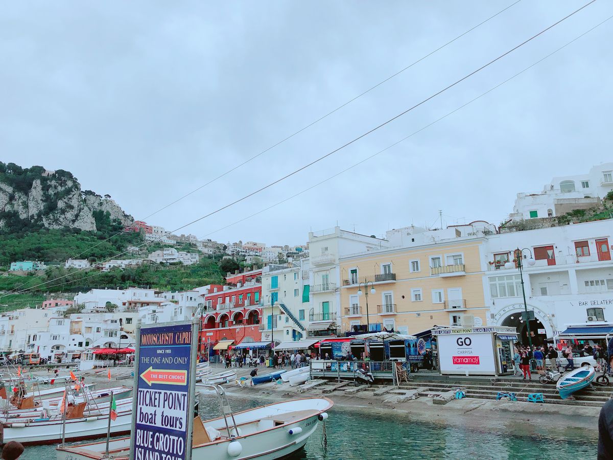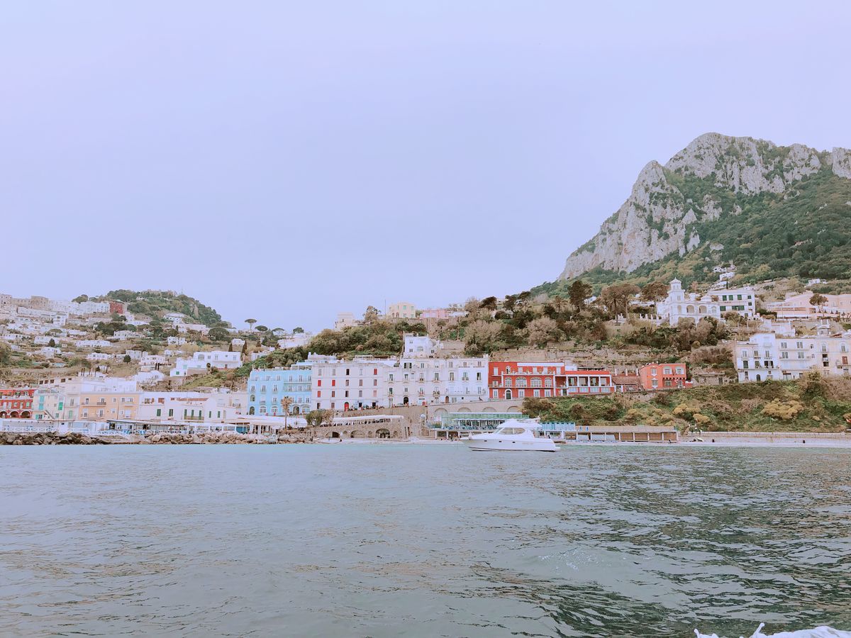 最初の集合と以下のトイレ休憩で1組異様に遅れるということもありましたが、素早い対応で無事予定していた船でカプリにむかえました。