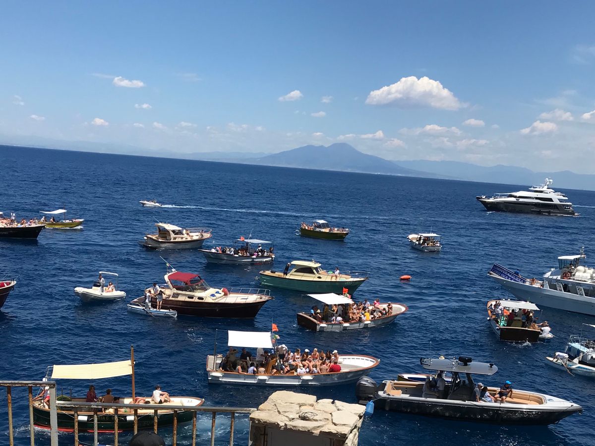 カプリ島では青の洞窟に入れないかわりにモーターボートで島の周りを1時間ほどかけてまわりました。