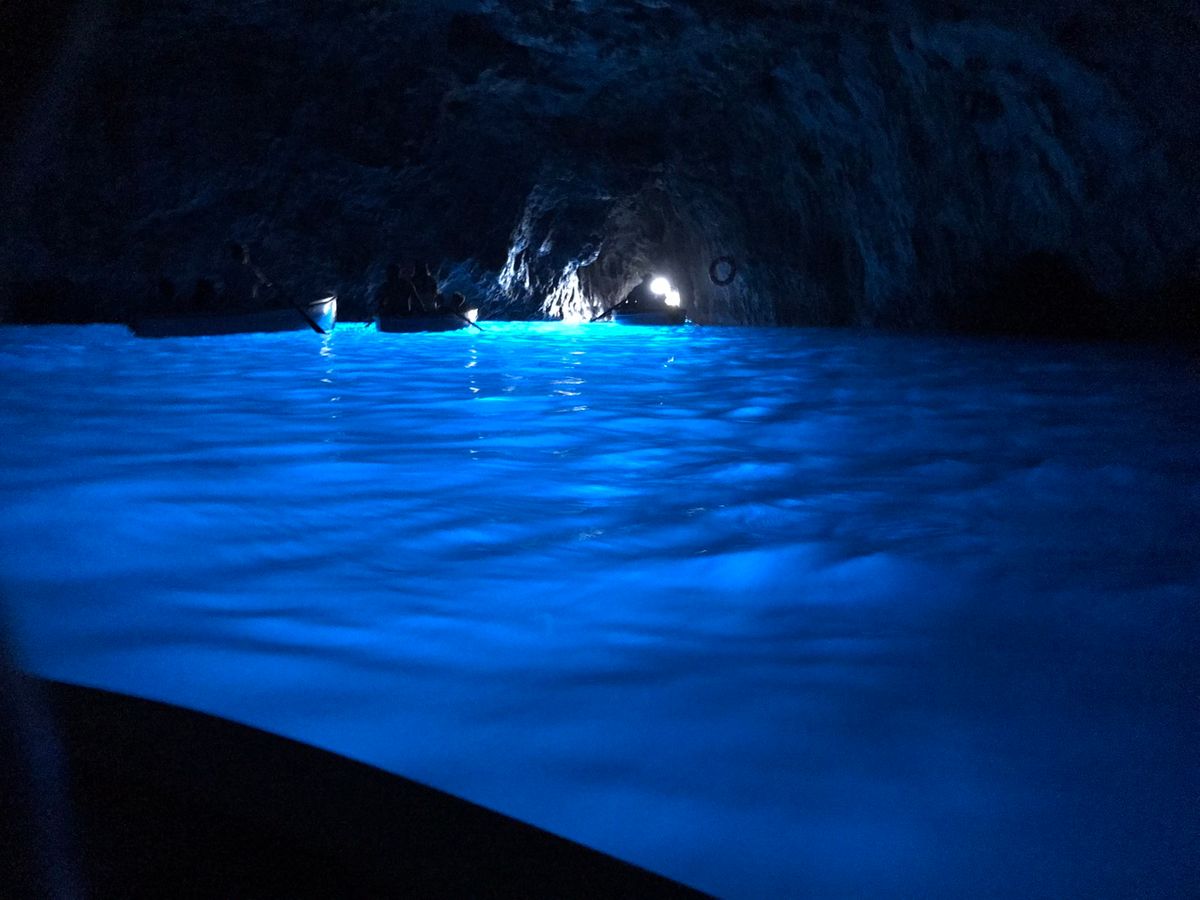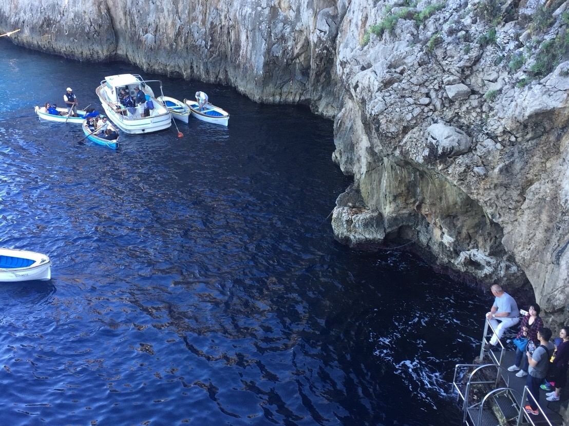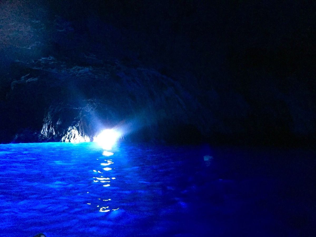 前日までの嵐が嘘の様な日本晴れ⁉︎イタリア晴れでした。海側からの小舟がめちゃくちゃ混んでいたので、ガイドさんが山側からチャレンジしましょう…と言ってバスで山の上に行きました。大正解でした。20分も待たずに、夢にまで見た洞窟に入れました。美しさは…言葉では表せません。また、絶対に行きます!