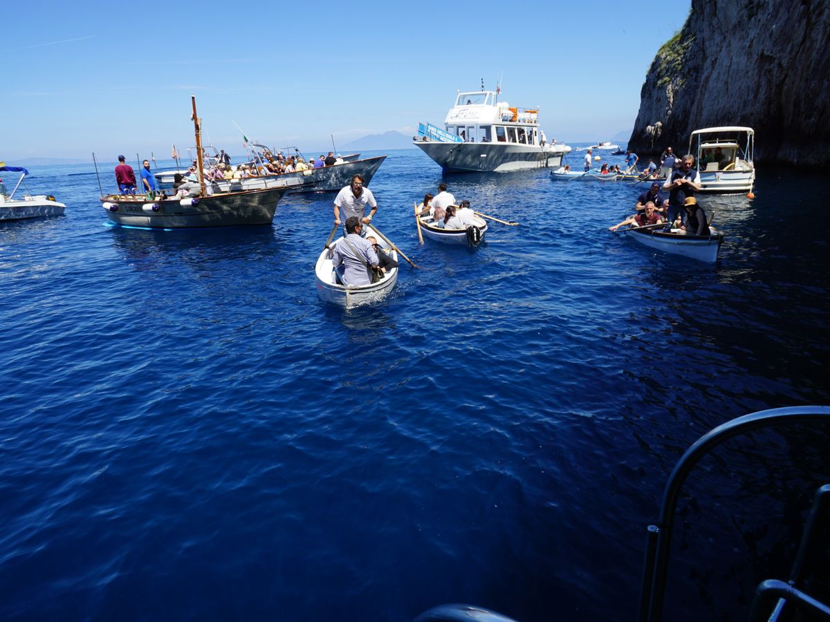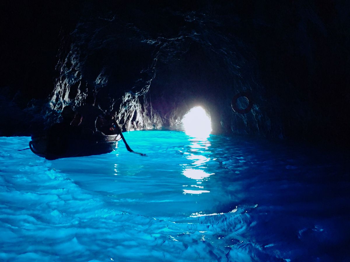 人気ツアーで団体移動でしたが、天候に恵まれローマからナポリへのバスもカプリ島へ高速船での移動も楽しめました。島内をマイクロバスで巡りますが、ギリギリの狭さで対向車とすれ違いながら、ナポリ湾の美しい青い海を眺めれます。青の洞窟の入口はとても狭くて、入る瞬間の体験、輝く青の体験は忘れられない思い出になりました。チップはケチらず楽しむのがおススメです。レモンのお酒の試飲、レモンチョコの試食あり、観光を思いっきり楽しめます。
