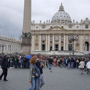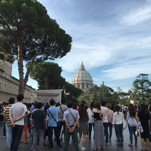 バチカンのお堀をぐるっと取り囲む長蛇の列を横目にスムーズに入場できる、とても良いツアーです。惜しむらくは、私たちが20リットルのリュックを持っていたため、入場口で預けねばならず、サンピエトロ寺院へ入れる出口を使えなかったこと。