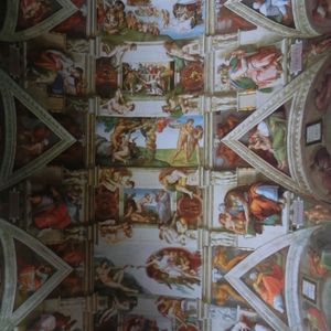 入場ホールから一歩内部に進むとそこはまさにルネッサンス芸術の宝庫。天井、壁、ときには床まで美術に囲まれます。レリーフのように立体的に見える天井画、巨大なタペストリーを見て進むとラファエロの間に入り巨大な天井、壁の素晴らしいフレスコ画に圧倒されます。その先はシツティーナ礼拝堂のミケランジェロの圧倒的な大空間です。天井には聖書物語、最後の審判は壁画です。来てよかった。