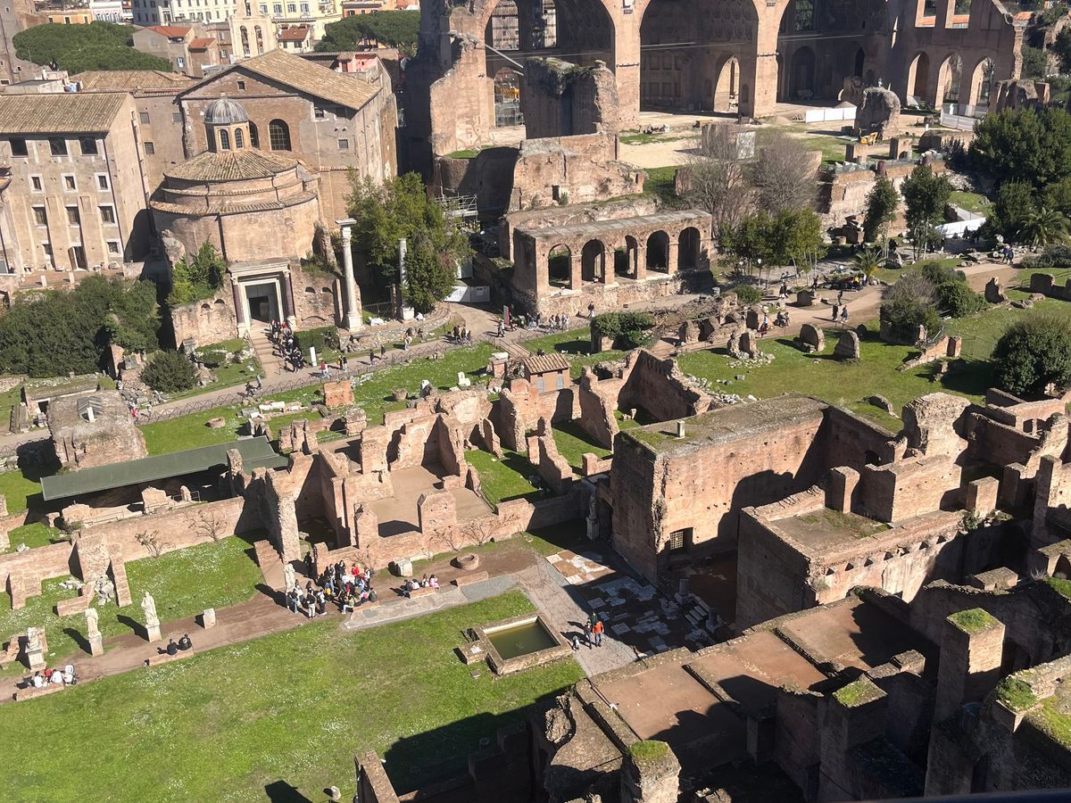 コロッセオを出ると、再びセキュリティチェックを経てパラティーノの丘へ。ここはほとんどトイレ休憩のみ。トイレが二つだけなので、行列でした。全員再集合したところでフォロ・ロマーノのほうへ移動し、その中心部辺りでヘッドセットを返却して解散。道中の主要なスポットで立ち止まって説明はあったものの、ここはざっくり説明してあとは各自で見て回ってくださいという感じで、パラティーノの丘でのトイレ休憩と合わせて約1時間。スケジュールの記載より1時間近く早い解散でした。