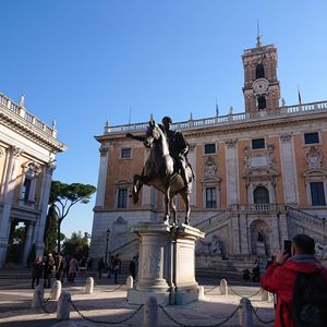 フォロ・ロマーノを一望できるカンピドーリオ広場へ。ガイドさんがグループごとに写真を撮ってくださり、ありがたかったです。