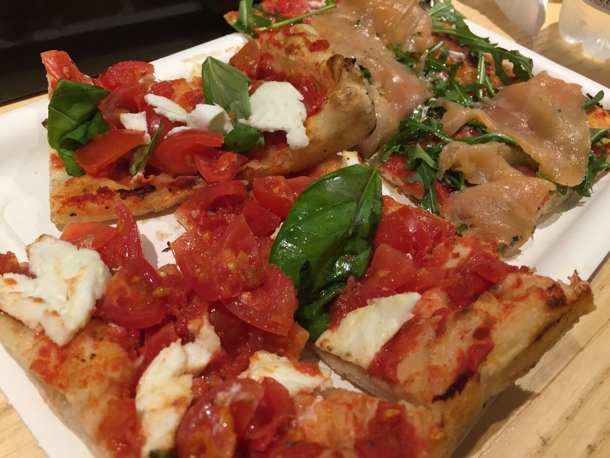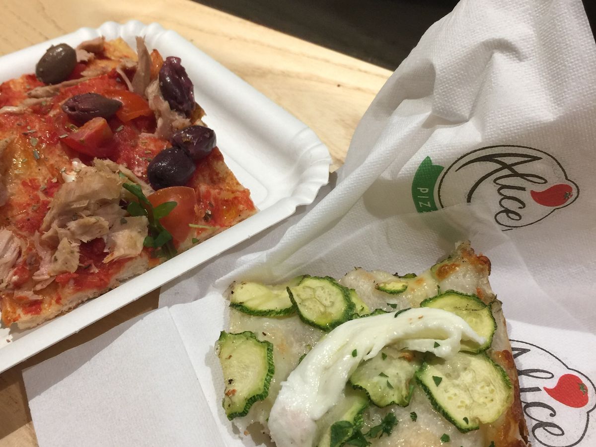 ピザは、チェーンの立ち食いピザ屋さんでした。