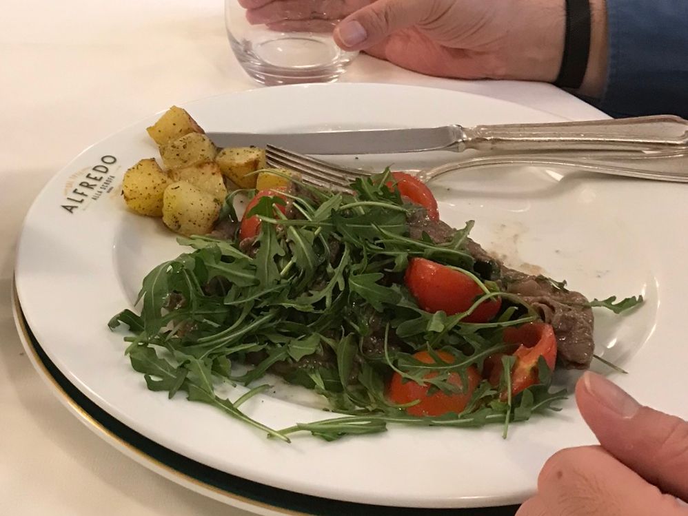 5月2日のお昼にセットメニューを予約して行きました。有名店なのでほぼ満席の状態だったので予約出来て良かったです。飲み物や前菜、名物のフェットチーネ、肉料理、デザートまで付いていてとてもお得感がありました。フェットチーネはとても美味しいのですが、一人前を一人で食べるのは少しくどいので、セットの半人前はとても良かったです。それと前菜の盛り合わせの中にあったモッツァレラも最高でした。