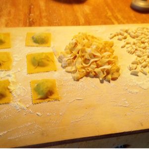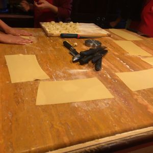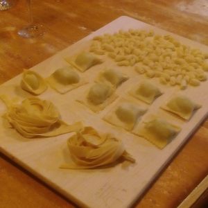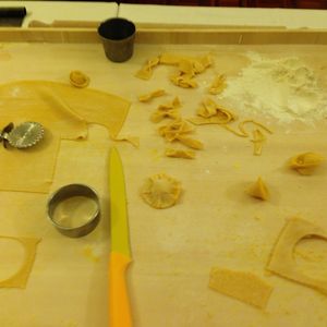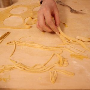 まず、自分の作ったパスタをいただくものではなかったです。パスタのこね方、パスタの種類を学ぶ講習会というようなものでした。粉と卵を合わせて、こねて、麺棒で伸ばして、切る。切り方も細さで違うパスタの種類を教えてもらい、いろいろなパスタを作ってみるというようなものでした。ゆでたり、味付けしたりする工程はありません。お店のオープン前の1時間での講習会というような感じでした。手取り足取りで熱心に教えてもらいありがたかったです。一緒に参加されていた他国の方とも作るのは各自ですが共に製作する感じがとても楽しかったです。また、パスタをこねる感覚や、伸ばし方、切り方などが日本でやっていることと同じかどうかを知ることができました。