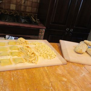 中世の雰囲気と自然があふれるマッツァーノ・ロマーノの民家で、アメリカ人の4人家族とカップルと一緒に、(飲める方はワインを飲みながら)リラックスした雰囲気の中、終始笑いの絶えないレッスンでした。それでも基本と重要なところはしっかり教えてくれ、作ったパスタ、メイン、デザートはとても美味しかったです。