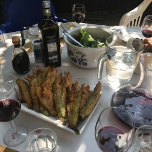 私の妻と三人の子供と私は、ローマの郊外の素敵な田舎の村でシンプルだけど美味しいイタリア料理を作り、食べる素晴らしい一日を過ごしました。シェフ・フランチェスコは素晴らしいホストであり、教師でもあり、一緒にいるのがとても楽しかったです。他の二人の料理仲間や、私たちが食材を買った地元の様々なお店で出会った素晴らしい人々も楽しみました。地元の肉屋がとても気に入り、料理をする場所は感動的でした。ローマにいる時や近くにいる時には、このアクティビティを強くお勧めします。
