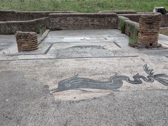 ローマから海岸に向かって25km位の所にローマの海の玄関口となるオスティアアンティカの遺跡、日本では弥生時代始まった頃にこんな都市が有ったなんて、驚きです。モザイクタイル模様も見応えありです。ローマ市内と違い人混みも無くゆっくり見られるのも良かったです。
