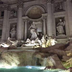 トレビィの泉で下車してしばしの自由時間でした。ちょうど日没の時だったのでライトアップの瞬間が見られてとても綺麗でした。