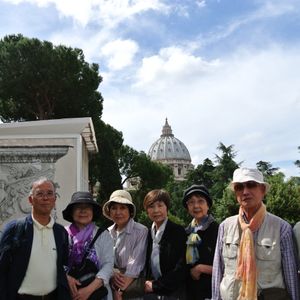 ローマは、ホームページを検索してこのマックスハーヴェスト社を探し当てた。ベネチアから列車でローマ入りして、翌日16日朝9時半ホテルの前で、ガイドさんの到着を待った。時間通りガイドさんが現れ、私たちの「ヴァチカン及び市内観光6時間」が始まった。観光バスでなく地下鉄とバスを利用して観光と聞いて驚いた。私が一番若く66歳、長姉が最年長で78歳、旅行6日目、それでもみな元気でガイドさんの後をついて行った。地下鉄で切符を買うのも一苦労。ヴァチカンについて長い行列をしり目に、私たちは並ぶこともなく入場できた。ガイドさんの説明の後、美術館とサンピエトロ寺院を見学。昼食はガイドさんの案内でパスタレストランへ。大満足の後、市内観光開始。バスに乗ったり、地下鉄に乗ったりして、主な観光名所を見てきた。「ローマの休日」のスペイン広場は、人人人で、映画の面影はなかった。トレヴィの泉は、残念ながら改装中。爺婆を連れて、広いローマを効果的に観光できたのも素晴らしいガイドさんのお蔭。感謝!!