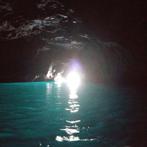カプリにわたる高速船で雨が降り、視界も悪くなったので、やはり4月2日で、初挑戦では無理だったかとあきらめていたが、次第に天気も回復し、洞窟前に着いたらすいていて、待つことなく小舟に移りすぐ洞窟へ。中もすいていてカンツォーネを歌いながら2周も回ってくれました。後で何度も挑戦したという人たちに、奇跡だと言われました。