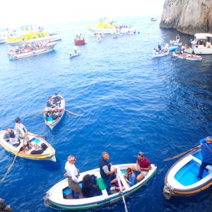 ローマもナポリも快晴でとても暑かったです。ガイドさんいわく快晴でも波と風の状況で洞窟には入れないこともありナポリに到着した時点でも入れるかどうかは分からないとのことでした。フェリーに乗り小舟に乗って初めて洞窟に入れるかどうかが分かります。