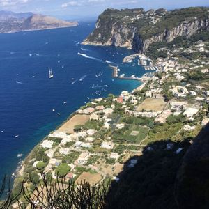 予約する際、洞窟に入れるかは天候次第となってたので、万が一入らなかった場合を想定して、ダメだった時に島散策もついているのにしました。結果的に実際、洞窟見れてラッキーでしたが、やはり、8月のハイシーズンだった為、混み合い、洞窟前での待機時間が長かったらしくカプリ島について、すぐには洞窟に向かわず(当初のスケジュールでは最初に洞窟→カブリ島昼食、散策)、島観光→昼食→洞窟の順番に変更になりましたが、添乗員の方が、臨機応変にスケジュールを組み直して、できるだけ