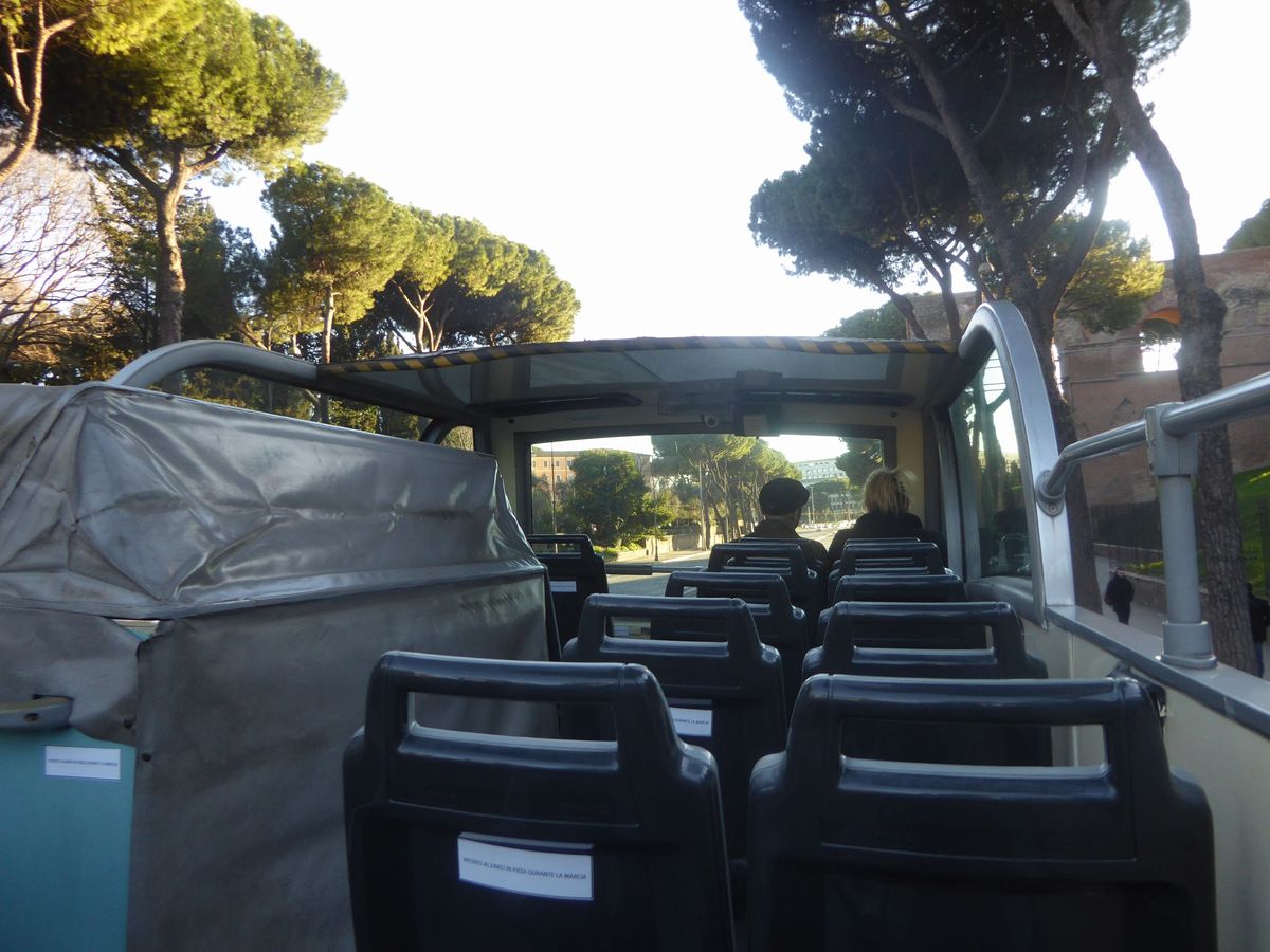 オープントップバスに乗って市内を観光するスタイルでした。じっくり説明して頂いたコロッセオが一番印象に残っています。ガイドブックでは分からない部分をその場で見ながら説明して頂けるのでとても価値のあるツアーだと思いました。冬はバスの二階は風がビュービューして寒いので、マフラーなどがあると良いと思います。帰りはテルミ二駅とスペイン広場周辺で解散が選べるので、夕飯の予定を決めてから行かれると良いと思います。