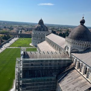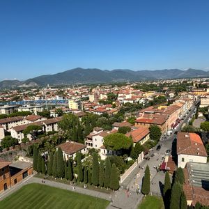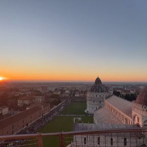 ピサの斜塔に登るとき平衡感覚がおかしくなるので、酔いやすい人は酔い止めを飲んでおいたほうがいいです。あと登るの結構しんどいです。みんなハアハアしてます。途中で休憩を何度かはさみました。後ろから人が来るのがプレッシャーになる人は途中で道を譲ったほうがいいです。階段を登りきった後の景色はとてもきれいです。ちょうど夕日と重なっていい写真が撮れました。
