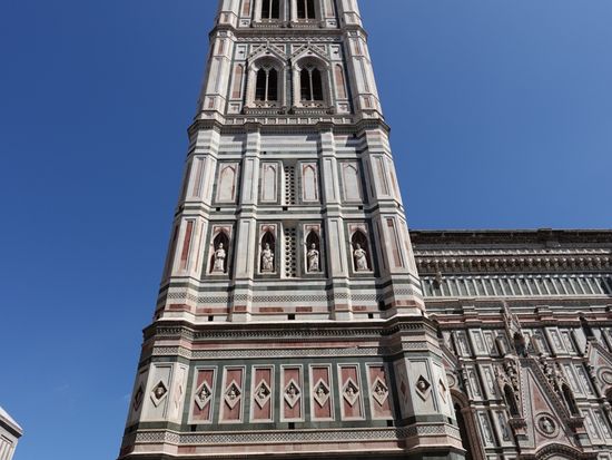 新幹線というにはゆっくりな列車でフィレンツェに到着、午前中はフリー観光を選択したので集合場所を確認してから歩き始めました。下調べあまりしてなくて、なんとなく登りたくなり30分ほど並んでジョットの鐘楼に登りましたが400段以上の石段に絶句、さらに夕方にはピサの斜塔にも上りましたので・・・。下調べしてなかった自分がダメでした。